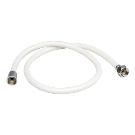 Tugevdatud valge dušivoolik kroomitud messingist liitmikega.